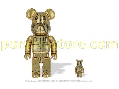 bape shark x hajime sorayama x be@rbrick 100%&400% set gold