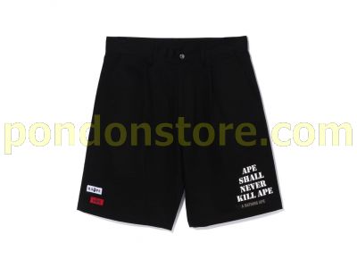 A BATHING APE : multi motif leather pocket chino shorts black
