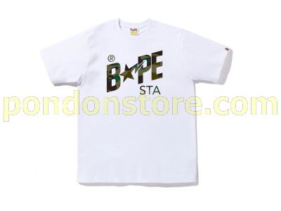 A BATHING APE : 1st camo bape sta logo white/green tee