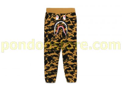 A BATHING APE : 1ST CAMO WIDE FIT SHARK SWEAT PANTS yellow