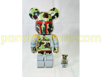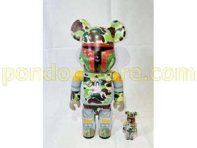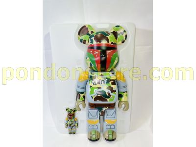 A BATHING APE : NO BOX star wars x bape abc camo boba fett be@rbrick 100% & 400% set with minor defect
