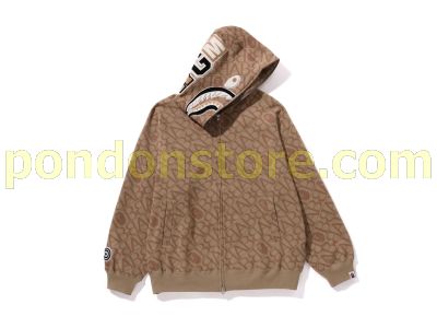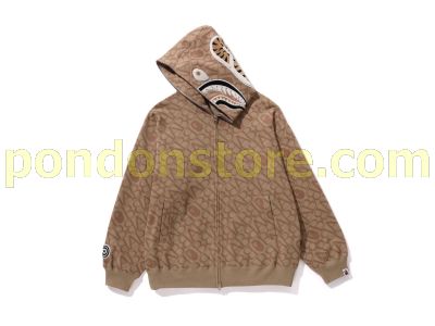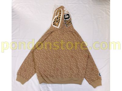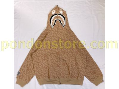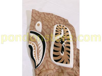A BATHING APE : sport monogram shark hoodie beige