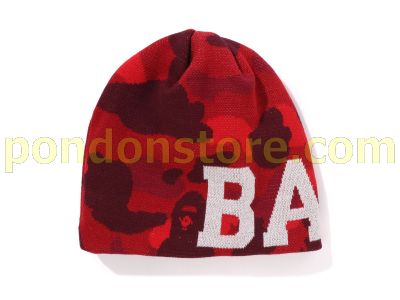 A BATHING APE : COLOR CAMO KNIT CAP red