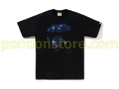 A BATHING APE : COLOR CAMO APE FACE TEE black/blue