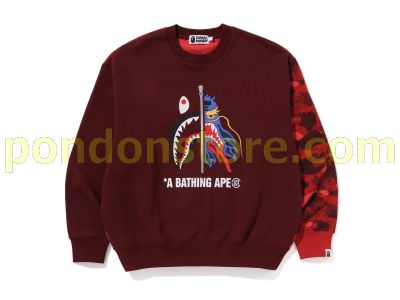 BAPE X CLOT CAMO SHARK PATCHED RELAXED FIT CREWNECK SWEATSHIRT red