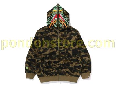 BAPE X CLOT CAMO SHARK RELAXED FIT FULL ZIP HOODIE green