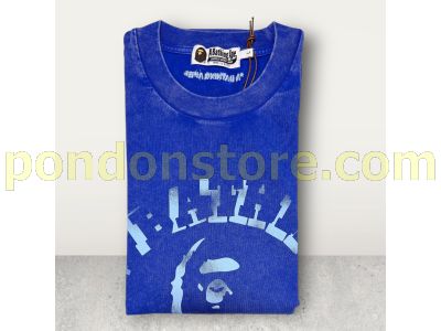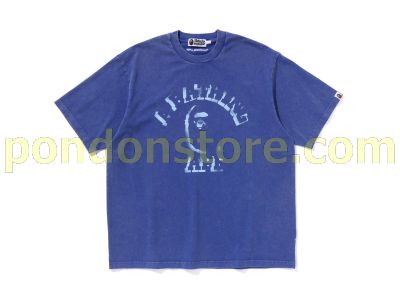A BATHING APE : garment dye spray print college relaxed fit tee blue
