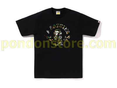 A BATHING APE : 1st camo crazy sta college tee black