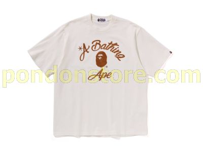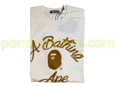 A BATHING APE : chain stitch college relaxed fit tee ivory