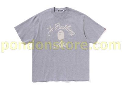 A BATHING APE : chain stitch college relaxed fit tee gray