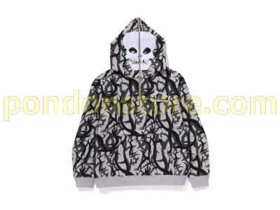 BAPE x NBHD TRIAL CAMO TWO FACE HALF ZIP PULLOVER HOODIE gray