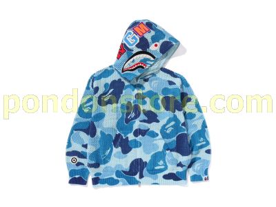 A BATHING APE : abc camo crochet shark full zip hoodie blue