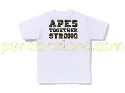 A BATHING APE : 1ST CAMO COLLEGE ATS TEE white/green