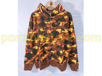 A BATHING APE : full 1st camo shark hoody orange