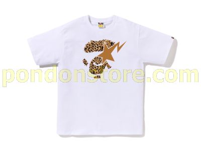 A BATHING APE : WILD LEOPARD PATTERN APE FACE STA TEE white