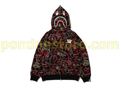 BAPE® X 88RISING GLOW IN THE DARK CAMO SHARK FULL ZIP HOODIE 2 red