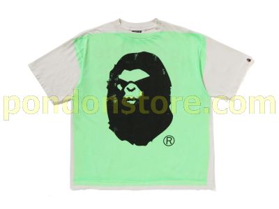 bape x SAINT Mxxxxx MAD FACE HANDPRINTING TEE white/green