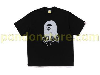 A BATHING APE : HAND DRAWN APE HEAD RELAXED FIT TEE black