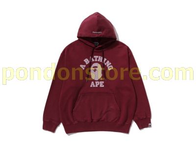 A BATHING APE : GARMENT DYE COLLEGE PULLOVER HOODIE burgundy