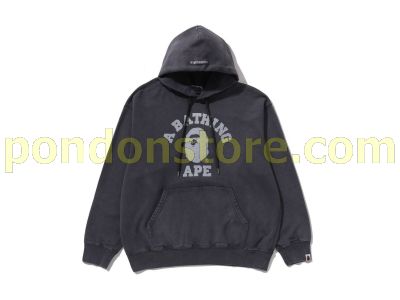 A BATHING APE : GARMENT DYE COLLEGE PULLOVER HOODIE charcoal