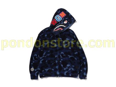 A BATHING APE : COLOR CAMO CROCHET RELAXED FIT SHARK FULL ZIP HOODIE blue