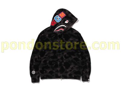 A BATHING APE : COLOR CAMO CROCHET RELAXED FIT SHARK FULL ZIP HOODIE black