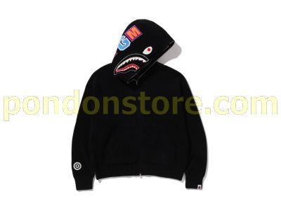 A BATHING APE : SHARK FULL ZIP KNIT HOODIE black