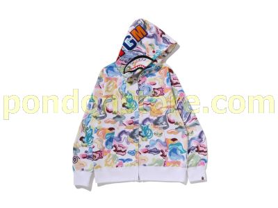 A BATHING APE : ART CAMO SHARK FULL ZIP HOODIE white