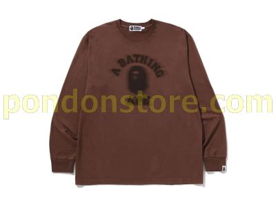 A BATHING APE : GARMENT DYE COLLEGE RELAXED FIT LS TEE brown
