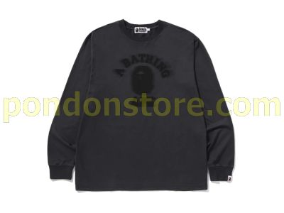 A BATHING APE : GARMENT DYE COLLEGE RELAXED FIT LS TEE charcoal