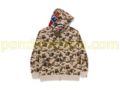 BAPE X DEF JAM CAMO SHARK RELAXED FIT FULL ZIP HOODIE beige