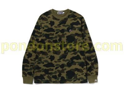 A BATHING APE : 1ST CAMO ONE POINT LS TEE green