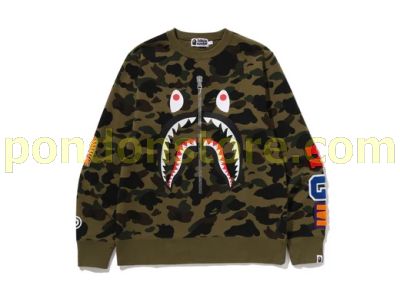 A BATHING APE : 1ST CAMO SHARK CREWNECK SWEATSHIRT green