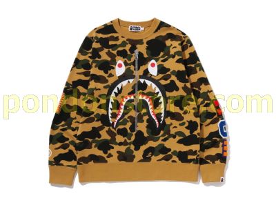 A BATHING APE : 1ST CAMO SHARK CREWNECK SWEATSHIRT yellow