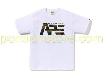 A BATHING APE : 1ST CAMO TACTICAL LOGO TEE white/green