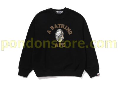 A BATHING APE : TREE EDGE CAMO COLLEGE RELAXED FIT CREWNECK SWEATSHIRT #1 black