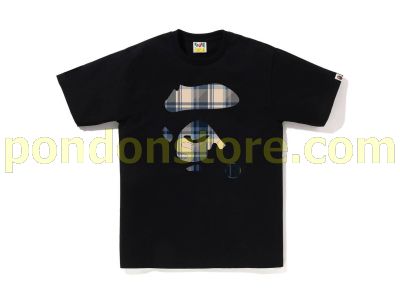 A BATHING APE : BAPE CHECK APE FACE TEE black/navy