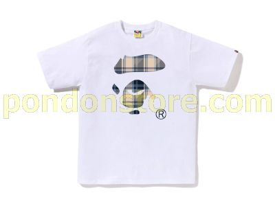 A BATHING APE : BAPE CHECK APE FACE TEE white/navy
