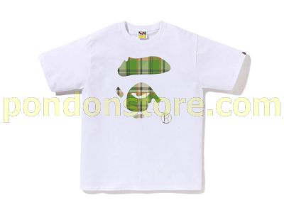 A BATHING APE : BAPE CHECK APE FACE TEE whitexgreen