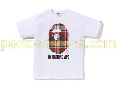A BATHING APE : BAPE CHECK BY BATHING APE TEE white/red