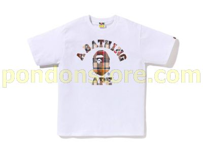 A BATHING APE : BAPE CHECK COLLEGE TEE white/red