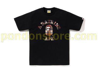 A BATHING APE : BAPE CHECK COLLEGE TEE black/red