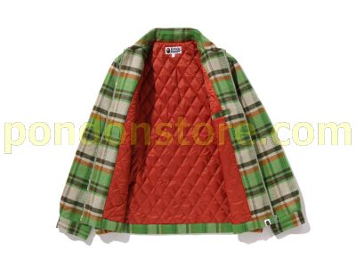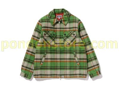 A BATHING APE : BAPE CHECK CPO ZIP JACKET green