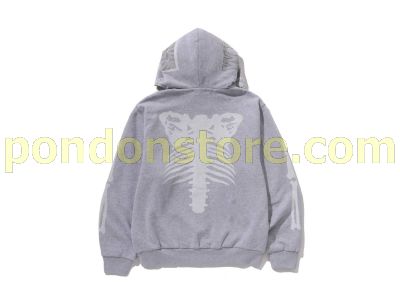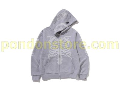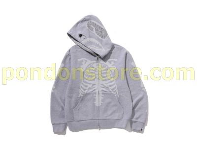 A BATHING APE : SKELETON SHARK HEAVY WASHED CROPPED FIT FULL ZIP HOODIE gray