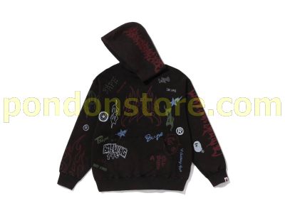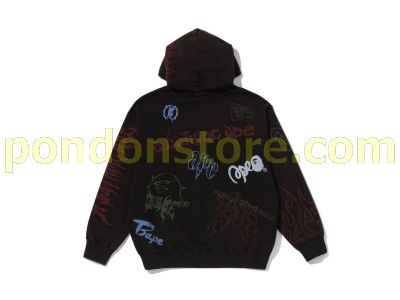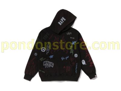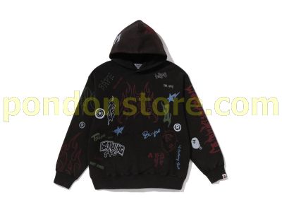 A BATHING APE : ALLOVER PRINT RELAXED FIT PULLOVER HOODIE black