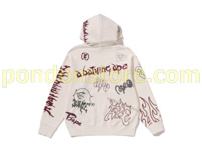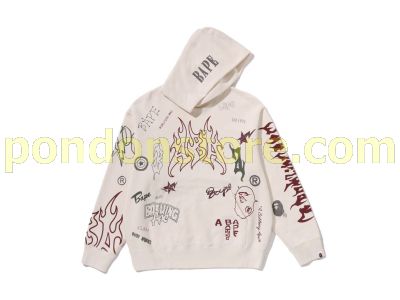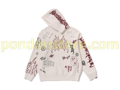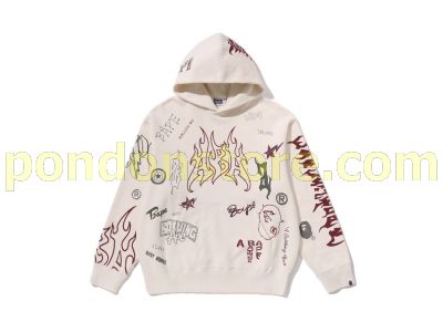 A BATHING APE : ALLOVER PRINT RELAXED FIT PULLOVER HOODIE ivory