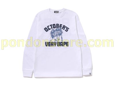 A BATHING APE : OVO COLLEGE LONG SLEEVE TEE white