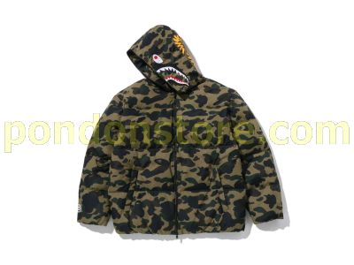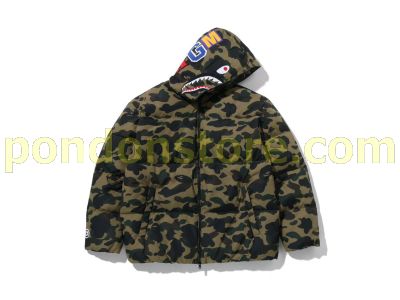 A BATHING APE : 1ST CAMO SHARK DOWN JACKET green