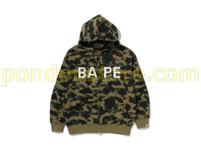 1ST CAMO BAPE LOGO RHINESTONE RELAXED FIT FULL ZIP HOODIE green