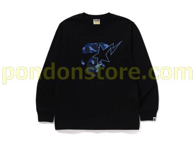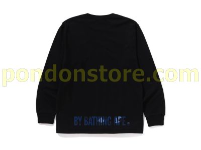 A BATHING APE : COLOR CAMO APE FACE STA LS TEE black/navy